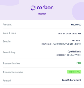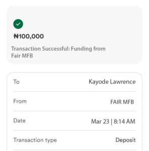 Afolabi AdelanwaI just completed the loan process and also paid the fee, waiting to be credited. Thank you Fair Microfinance 😊
