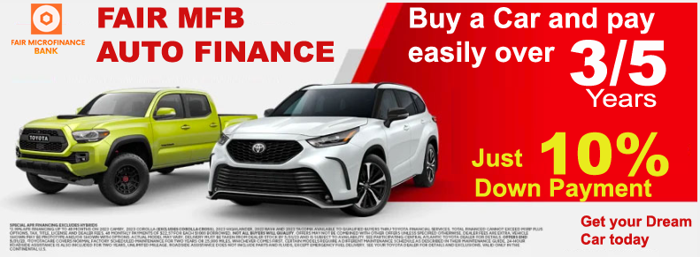 Fair MFB Auto finance offers a 5% Interest Rate on all car brands with a 3-5 years repayment limit. A 10% down payment, and you can drive your car home.